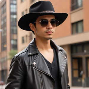 フェルトハットのコーディネート ウエスタンハットとレザージャケットのワイルドセクシーコーデ
